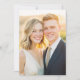 This wedding invitation features a warm, romantic design with a close-up photograph of two individuals smiling together. The color palette includes soft yellows and light browns, creating a dreamy, late afternoon ambiance. The composition is intimate and centered, emphasizing the connection between the subjects. The style is candid and realistic, capturing genuine happiness and affection, making it perfect for celebrating love and companionship on your special day.