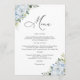 Romantic Light Blue Floral Wedding Menu is an elegant menu card designed with soft light blue tones and delicate floral accents that bring a romantic and refined feel to the wedding table setting. Featuring graceful typography and a clean layout, this menu beautifully presents each course while perfectly coordinating with the floral wedding stationery suite. Ideal for romantic, garden, or classic wedding themes, it adds a polished and cohesive touch to the overall reception décor.