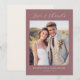 This wedding thank you card features a clean, modern layout with a central photo placeholder framed by ample white margins on a maroon background. The design includes elegant script typography for "Love & Thanks" at the top and structured serif and sans-serif fonts for names and date placeholders below the image. The color palette combines soft neutrals in the photo area with a bold maroon border, creating a harmonious contrast. The overall style is contemporary minimalism blended with classic sophistication, perfect for conveying warmth and gratitude. Ideal for commemorating weddings, this card balances visual elements to create an inviting and refined look.