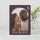 This elegant save the date design features a warm, romantic photo framed within an arched border, set against a rich maroon background. The typography is clean and modern, complementing the soft, natural tones of the image. Perfect for couples looking to announce their special day with sophistication and charm, this design captures a timeless and heartfelt mood. It’s ideal for those who want to convey warmth and intimacy in their wedding announcement while allowing space for personalization details.