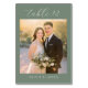 This elegant wedding table card features a soft, romantic photo design with a warm and inviting color palette. The layout is simple yet sophisticated, highlighting the central image area surrounded by delicate typography that adds an air of refinement. Perfect for capturing special moments, this design exudes a timeless charm suitable for any couple's big day. With its customizable text options, it seamlessly integrates into your wedding decor, ensuring each guest feels part of the celebration.