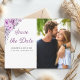 Add a touch of timeless romance to your special day with this elegant wedding set featuring purple watercolor flowers and modern typography. This beautiful purple floral wedding design perfectly complements an elegant and sophisticated look. Ideal for a purple-themed wedding, this collection includes everything you need: from the main invitation to save-the-date cards, reception favors, thank-you notes, and much more. Whether you're planning a spring, summer, or fall wedding, this coordinated set will add an elegant and cohesive touch to your bridal stationery.