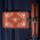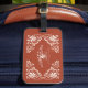 Das Gepäckschild zeigt ein wunderschönes Aquarellbild mit einem weißen, blumengeschmückten Rahmen auf einem warmen, erdigen roten Hintergrund. Die Formulierung "Mr. & Mrs." kann leicht angepasst werden. Es ist ein großartiges Geschenk für Jungvermählte und Paare, die Jahrestage feiern und ihnen dabei helfen, ihr Gepäck auf Reisen leicht zu erkennen.
