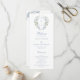 Elegantes Hochzeitsprogramm mit atemberaubendem, weich bläulichem Hochzeitsmonogramm-Wappen und klassischer Kalligraphie. Das Monogramm-Wappen fügt dem Programm eine Touch Vintager Eleganz hinzu. Es zeichnet sich durch ein kompaktes, weiches blau-grünes botanisches Design aus, das zeitlos und einzigartig ist. Die elegante Kalligraphie verleiht dem Programm eine persönliche Touch, die sowohl romantisch als auch bezaubernd ist.