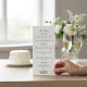Add a touch of romance to your wedding reception with this stunning calligraphy menu card. The design showcases an elegant script "The Menu" title and a sweet illustration of two swans with their necks intertwined, creating a heart shape. The crisp white background ensures the design's sophistication and readability, making it a perfect choice for any wedding theme. This menu card serves as a beautiful prelude to the culinary journey your guests are about to embark on, reflecting your love story.