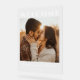 This wedding sign features a warm, intimate photograph of two individuals in a close embrace, framed by bold text elements. The design uses a color palette of soft browns and beiges with golden sunlight accents, creating a romantic and inviting atmosphere. The typography includes large, welcoming "WELCOME" letters at the top, elegant script for personalization, and clear serif font for additional details. Perfect for celebrating love and unity, this sign combines photographic realism with graphic simplicity to convey warmth and celebration.