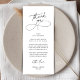 A Heartfelt Greeting for Your Wedding Guests Welcome your loved ones to their seats with this elegant romantic script, minimalist "thank you" dinner place setting card. Designed to fit perfectly as a 4x9" place setting or plate card, this piece features romantic, airy calligraphy that expresses thank you with your deep gratitude to the family and friends who have supported your journey.