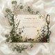 Dieses naturlich inspirierte Design besticht durch zarte Wildblumen und botanische Zweige, die rund um einen Pergamentgarten angeordnet sind und den Charme eines zeitlosen Waldgartens widerspiegeln. Eine perfekte Wahl für rustikale, romantische oder Outdoor-Feiern. Personalisieren Sie es mit Ihren Namen, Datum und Veranstaltungsdetails.