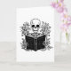 Skelett Lesekarte für Liebesleser. Niedliches Skelett mit Buchillustrierung. Schwarz-Weiß Skelett Buch Blume ästhetisch. Die lustige Geschenkidee für Buchliebhaber. Gotische Buchkarten.