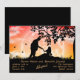 Romantische Silhouette eines Paares unter einem Baum mit Vollmond im Hintergrund und ein paar Schmetterlinge. Der Hintergrund ist ein sterniger, bewölkter rot-orangefarbener Himmel. Ideal für eine Ankündigung oder eine Verabredung.