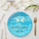 Romantik - zwei Tauben mit rosa Herz auf blau Pappteller