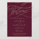 Ce programme romantique de mariage de calligraphie bordeaux est parfait pour un simple mariage. Le design classique moderne comprend des tourbillons fantaisistes et des fleurs fantaisistes avec une magnifique typographie de feuille d'or en faux champagne. Indiquez le nom de la mariée et du marié, la date et le lieu du mariage, le message de remerciement, l'ordre de service et la fête de la mariée. Remarque : Ce design ne comporte pas de véritable feuille d'or. C'est un graphisme de haute qualité fait pour ressembler à du papier doré.