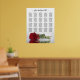 Cet élégant tableau de 20 places mariage présente une belle rose rouge reflétant dans l'eau avec des vagues et des ondulations. Le titre dit "s'il vous plaît trouvez votre table" dans la calligraphie de script dentée. Il y a de la place pour les noms du couple et la date du mariage. Ce graphique a des affectations de table pour 200 invités - 10 personnes par table.