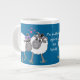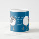 Eine lustige Jumbo-große Coffee-Tasse, mit zwei Comic Schafen und Herzen, von einer handgezeichnet Illustration von Judy Adamson. Sie können den Text ändern oder löschen und auch die blaue Hintergrundfarbe ändern.