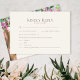 Vervollständigen Sie Ihre Hochzeitsreise mit unserer Romantik Watercolor Acacia Wedding RSVP Card, mit der Sie Ihre Einladung erfüllen können und gleichzeitig Ihre Vorlieben und Allergien angeben können. Diese Karte bietet den Gästen einen eleganten und dezenten Rahmen, um ihre Anwesenheit zu markieren und zusätzliche Details zu liefern, um ein nahtloses und personalisiertes Speiserlebnis zu gewährleisten. Auf der Rückseite, mit Aquarellfarben-Akaziendesign geschmückt, gibt es Platz für die Namen und die Adresse der Paare für die Rückkehr der Karte, indem eine charmante Touch zu diesem essenziellen Hochzeitsdetails.
