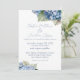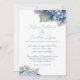 Diese romantische Blumen-Hochzeitseinladung mit Aquarellblauen Hydrangeas. Ein zarter Strauß an Hydrangea-Blume wird oben abgebildet, ein anderer unten.