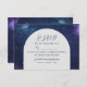 Mit dieser romantischen, himmlischen RSVP-Karte können Sie Ihre Gäste stilvoll empfangen. Die Vorderseite mit einem traumhaften Nachthimmel tiefer mariner und violetter Farbtöne mit funkelnden Sternen zeigt ein modernes Arkadenlayout für die Gäste, während die Rückseite ein zartes, liebevolles Monogramm zeigt, umgeben von botanischen Ästen. Diese RSVP-Karte ist perfekt geeignet für Paare, die eine kosmische Hochzeit planen, und ergänzt Ihre himmlische Hochzeitssuite. Sie können die Optionen für Text und Essen ganz nach Ihren Wünschen anpassen.