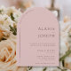 Romantische Elegante Minimalistische Rose Arch Wedding Einladung Diese Einladung dreht sich um schlichte, moderne Eleganz. Mit sanften Kurven und Halbbogendesign fühlt es sich frisch und zeitgemäß an. Die blassfarbene Rose, ein sanftes Pastellrosa, verbindet sich wunderschön mit dem kräftigen Kirschburgund-Schriftart, um einen einladenden und raffinierten Look zu schaffen.