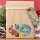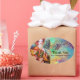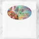 ROMANTISCHE FRAU MIT SPARKLING-PEACOCK-FEATHER OVALER AUFKLEBER