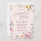 Moderne Kalligraphie Graduiertenskripte umgeben von Aquarellblumen in mutierten Pastellgelb, Pfirsich, Lila und Pflaume, elegant und romantisch, ideal für Abschlussfeier im Frühling und Herbst.