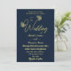 Einzigartige Einladung zur Hochzeit mit romantischen und eleganten goldenen Schmetterlingen auf marinischem Hintergrund. Für mehr passende Produkte klicken Sie auf die Sammlung oben oder kontaktieren Sie mich.