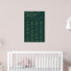 Dieses romantische grüne kalligraphische Plakatplakat ist perfekt für eine einfache Hochzeit. Dieses Schild kann verwendet werden, um Ihre Gäste alphabetisch oder per Tischnummer zu organisieren. Das moderne klassische Design besticht durch extravagante Wirbel und skurrile Schnörkel mit herrlich eleganten, handgezeichneten Imitaten, die auf Champagner-Goldfolie-Typografie setzen. Dieses Hochzeitsposter bietet Platz für bis zu 120 Gäste. Machen Sie Platz für mehr (oder weniger) Gäste, indem Sie auf die Schaltfläche "Anpassen" klicken und die Größe des Schriftartes verkleinern oder vergrößern. Neben der Platzierung jedes Gastes, personalisieren Sie dieses Schild mit den Namen der Braut und Bräutigam und dem Hochzeitstag. Bitte beachten Sie: Dieses Design enthält keine echte Goldfolie. Es ist eine hochwertige Grafik, die wie Goldfolie aussieht.