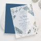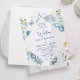 Romantische Dusty Blue Watercolor Blumenvellum Wedding Einladungen mit dustig blauen Zeleste- und Delphinium-Blume mit Eukalyptusgrün mit Schmetterlingen. Fügen Sie Ihren eigenen Text in elegantem, modernem Kalligrafieschrift hinzu. Für Sie entworfen von Evco Studio www.zazzle.com/store/evcostudio