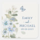Romantische Dusty Blue Watercolor Blühende Hochzeitskleber mit dustig blauen Zeltes und Delphinium Blume mit Eukalyptusgrün mit Schmetterlingen. Fügen Sie Ihren eigenen Text in elegantem, modernem Kalligrafieschrift hinzu. Fügen Sie zu Gastgeschenke Hochzeiten, Einladung Umschlag Aufkleber, Geschenktaschen und mehr. Weitere Größen und Formen sind verfügbar. Für Sie entworfen von Evco Studio www.zazzle.com/store/evcostudio