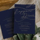 Dieses romantische Abendessen mit der Verlobung vor und hinter der Marine lädt zum Party oder Feiern ein. Das moderne klassische Design besticht durch extravagante Wirbel und skurrile Schnörkel mit herrlich eleganten, handgezeichneten Imitaten, die auf Champagner-Goldfolie-Typografie setzen. Fügen Sie zusätzliche Informationen auf der Rückseite der Karte hinzu. Bitte beachten Sie: Dieses Design enthält keine echte Goldfolie. Es ist eine hochwertige Grafik, die wie Goldfolie aussieht.