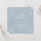 Ein Rahmen für diese Einladung bilden romantische antike Ornamente in Weiß vor einem hellschieferblauen Hintergrund. Vollständig anpassen mit Ihren eigenen Namen und Informationen. Eine für jeden Anlass geeignete Einladung: Hochzeiten, Verlobungsfeiern, ein rett-the-date oder eine Firmenveranstaltung. Erhältlich in alternativen Farben mit passenden Karten, Favoriten und Porto.