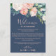 Diese romantischen, blauen Begrüßungsbriefe & Reisekarten sind perfekt für eine elegante Hochzeit. Die Blumenmotive sind in Rosa, Pfirsich und Weiß gehalten, die Blume in den Aquarellfarben sind auf marineblau gehalten. Auf der Vorderseite der Karte befindet sich ein Begrüßungsschreiben, auf der Rückseite der Karte befindet sich der Hochzeitstag. Diese Noten sind ideal für Hochzeiten in Urlaubsort und Begrüßungstaschen für Hotelgäste.