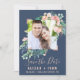 Diese romantische Blume mit blauen Foto Save the Date ist perfekt für eine Hochzeit. Das Blumendesign besticht durch rosa, rosa, pfirsichfarbene und weiße Blume in Aquarelltönen mit geometrischen Elementen aus der Rose der Imitate auf marinebasischem Hintergrund. Personalisieren Sie die Verlobung mit Ihrem Lieblingsbild, Namen, Hochzeitsdatum und Ort. Bitte beachten Sie: Dieses Design enthält keine echte Goldfolie der Rose. Es ist eine qualitativ hochwertige Grafik, die wie Rose Gold Schimmer aussieht.