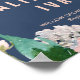 Dieses romantische Poster aus der Blume Blauer ist ideal für eine Hochzeitsfeier. Die Blumenmotive sind in Rosa, Pfirsich und Weiß gehalten, die Blume in den Aquarellfarben sind auf marineblau gehalten. Passen Sie das Poster an mit dem Namen der Braut und des Bräutigams, dem Datum und dem Ort der Hochzeit.