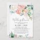 Diese romantische Peony Blume Hochzeitsbrunch Einladungskarte eignet sich perfekt für eine elegante Veranstaltung. Die Blume sind in Rosa, Rosa, Pfirsich und Weiß gehalten, die Farbe des Wassers ist blau.