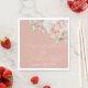 Diese romantischen, blumengeschmückten Servietten verfügen über einen eleganten, staubigen pfirsichfarbenen Hintergrund mit Aquarellpfirsich und weißen Blume. Ein zarter Strauß wird oben abgebildet. Beispielnamen eines Ehepaares werden unten in einem eleganten Script-Schriftart gedruckt.
