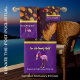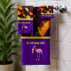 Romantische, moderne Herbstblätter mit lila Textur und dem Bild eines rosa Flamingos stehend mit einer roten Bogen-Krawatte