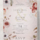 MIT ODER OHNE QR-CODE ODER ABENDESWÄHLUNGSOPTIONEN. Dieses Design zeichnet sich durch einen schönen, weichen, rot-rosa-bedrückten Hintergrund mit einem zarten Rosa, Maron, Weiß, lila und grüne Sprays aus. Es ist romantisch mit einer Touch von Vintag. Fügen Sie Ihre eigene Webseite für Hochzeiten hinzu, damit die Gäste auf die Einzelheiten der Hochzeit zugreifen können, die Auswahl des Abendessens treffen und vieles mehr. Erstellt von der einfachen Farmhouse Press.