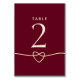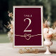 Fügen Sie Ihrem Empfang eine Touch Eleganz mit unserer Minimalistischen Burgundy Wedding Tischnummer hinzu. Dieses elegante Stück mit elegantem, romantischem Design ist mit einem goldenen Seilkern und modernen Kalligrafien geschmückt. Es verbindet Eleganz und Romantik perfekt und sorgt dafür, dass Ihre Tischeinstellungen so stilvoll wie unvergesslich sind.