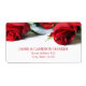 Liebliches Hochzeitsadressen-Label mit rote Rosen.