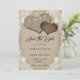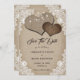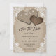 Rustikale Hochzeiten speichern die Dattelkarten mit den Herz-Lungen auf einem mit weißer Blütenspitze und Lichtern geschmückten Burlberg-Hintergrund.