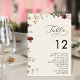 Romantische Script-Wildblumen Elfenbeinsitzdiagram Tischnummer