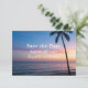 Eine atemberaubende Sonnenuntergangsszene mit einem goldenen und lila Himmel, ruhigen Meereswellen und einer schwarzen Silhouette einer Palme auf der rechten Seite. Die warmen Farbtöne reflektieren das Wasser und schaffen eine romantische und ruhige Atmosphäre - ideal für eine Hochzeitsreise.