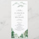 Teilen Sie mit Ihrer Familie und Ihren Freunden die Einzelheiten der Hochzeitsfeier mit diesen individuell gestaltbaren Hochzeitsprogrammen. Es verfügt über einen Aquarellwald. Personalisieren Sie diese, indem Sie Ihre Daten hinzufügen. Diese Waldhochzeiten sind ideal für Hochzeiten im Freien und im Winter.