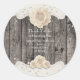Romantische Weiße Blume und Perlen Rustikales Holz Runder Aufkleber