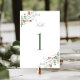 Elegante romantische Hochzeitskarte mit atemberaubendem sanften Grün und Rot, botanisches Design und klassische Kalligraphie. Die Tischnummer ist im Winter.