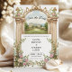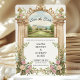 Die Einladung beinhaltet ein herrschaftliches Gartenschloss, das von den architektonischen Details der Aquarellarchitektur gerahmt ist und von üppigen Aquarellblumen in Blau, Elfenbein und Rot umgeben ist. Die illustrierten Säulen und der Bogen bilden einen anmutigen Rahmen, der das Auge auf Ihre Namen und Veranstaltungsdetails lenkt. Dieses Design ist ideal für Paare, die romantische Flora und elegante Architektur Liebe haben, und kann mit Ihren Namen, Datum und Lage personalisiert werden. Wählen Sie Ihr Lieblingspapier aus und passen Sie den Rücken an, um ein Save the Date zu schaffen, das zeitlos und einzigartig für Sie ist.