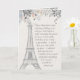 Romantische Karte zum Geburtstag Ihres Geliebten hat eine blau-graue Blumengrenze, eine Skizze des Eiffelturms und zwei subtile Herzen im Hintergrund. Entworfen von Simply Put by Robin; Elemente aus dem Hungry Jpeg.