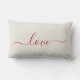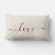 Romantisches Kissen mit rotem Schrift, das "Liebe" liest. Ideal für die Dekoration oder das Geschenk am Valentinstag.