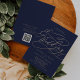 Dieser romantische Gold- und Marinecode in einer Einladung ist perfekt für eine einfache Hochzeit. Das moderne klassische Design besticht durch extravagante Wirbel und skurrile Schnörkel mit herrlich eleganten, handgezeichneten Imitaten, die auf Champagner-Goldfolie-Typografie setzen. Rett Papier durch einen QR-Code für den Gast, um Details, UAWG oder beides anzuzeigen. Bitte beachten Sie: Dieses Design enthält keine echte Goldfolie. Es ist eine hochwertige Grafik, die wie Goldfolie aussieht.