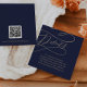 Diese romantische Gold und Marine QR Code Hochzeitsdetails Gehäuse Karte ist perfekt für eine einfache Hochzeit. Das moderne klassische Design besticht durch extravagante Wirbel und skurrile Schnörkel mit herrlicher eleganter, handgezeichneter Imitat-Champagner-Goldtypografie. Bitte beachten Sie: Dieses Design enthält keine echte Goldfolie. Es ist eine hochwertige Grafik, die wie Goldfolie aussieht.